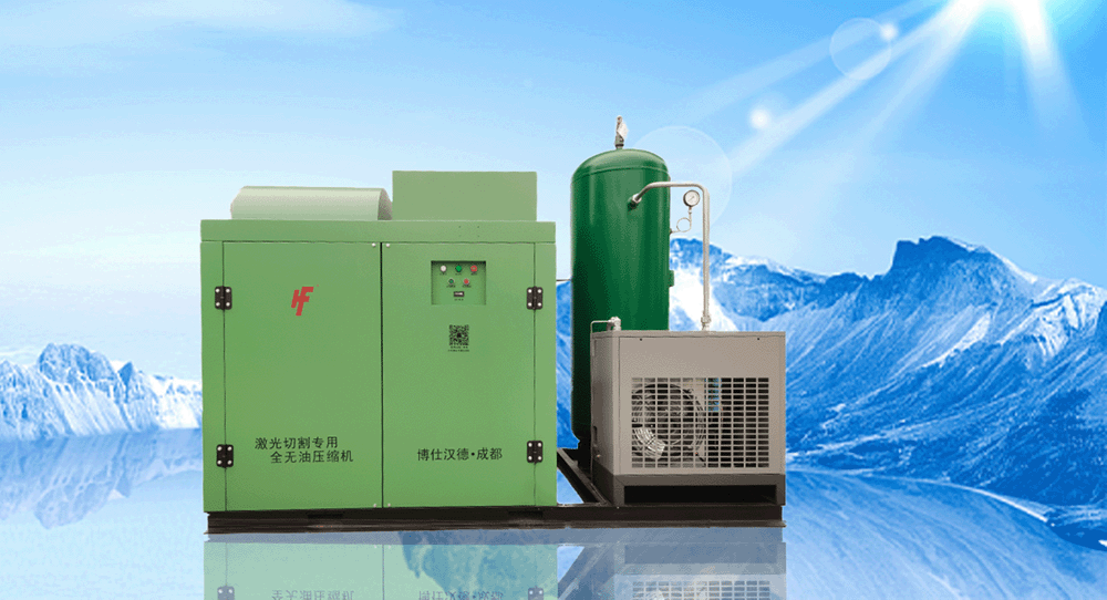 空压机的往复运动摩擦元件全部采用自润滑材料,不用添加任何润滑油做润滑的情况下即可工作。由于压缩气体不与润滑油接触,排出气体不含油份,因而具有较高纯度,不会污染作业环境和用气设施,不二次污染产品。本产品针对激光切割机床压缩空气需求条件设计、制造。